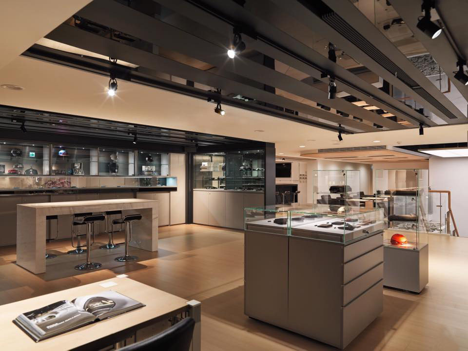有別於其它展示中心沉穩的深色設計,特別以楓木作為主軸規劃出一個清爽明亮的展示空間;休憩區的跳色沙發於整體環境更顯年輕活潑。
