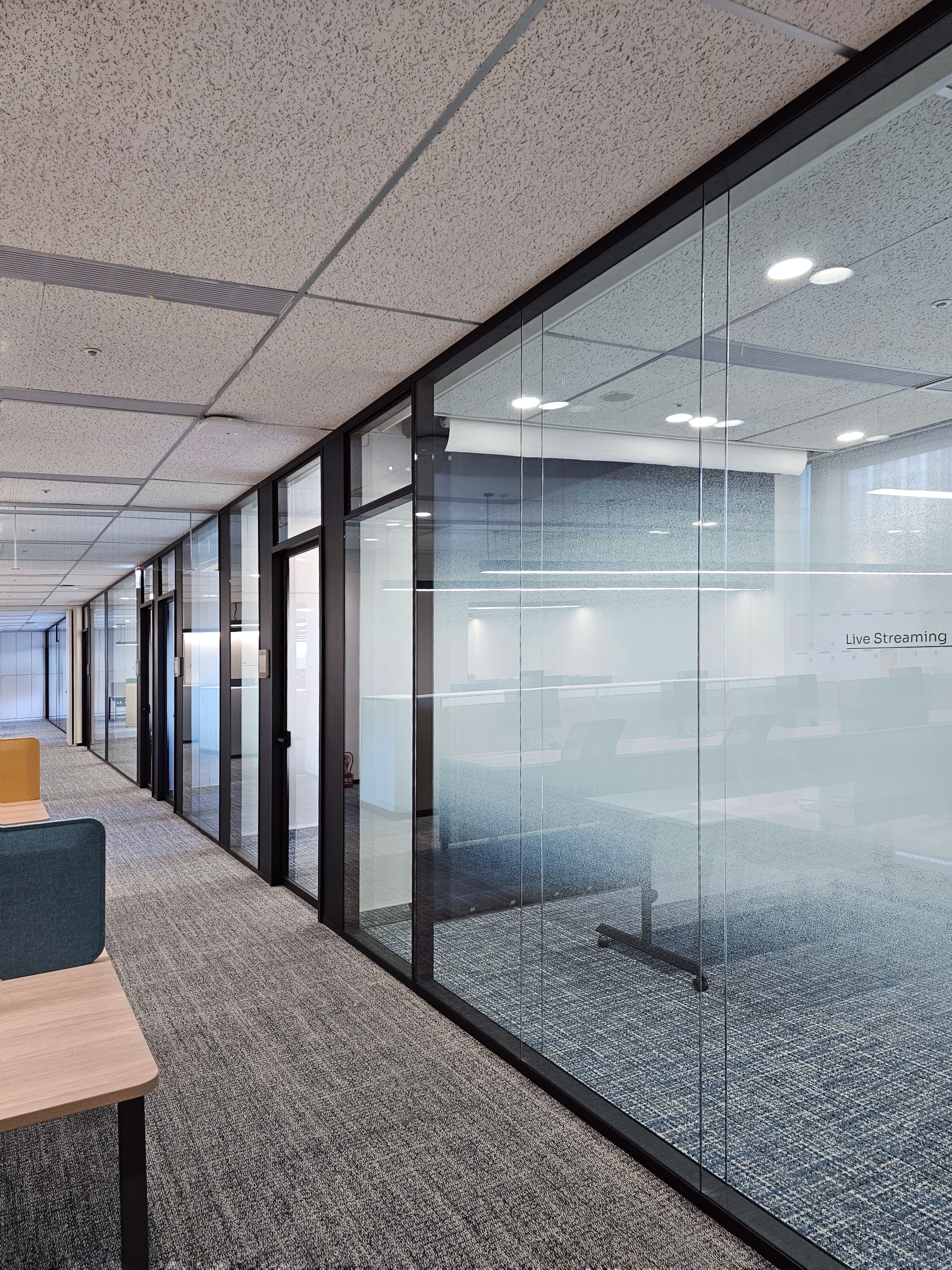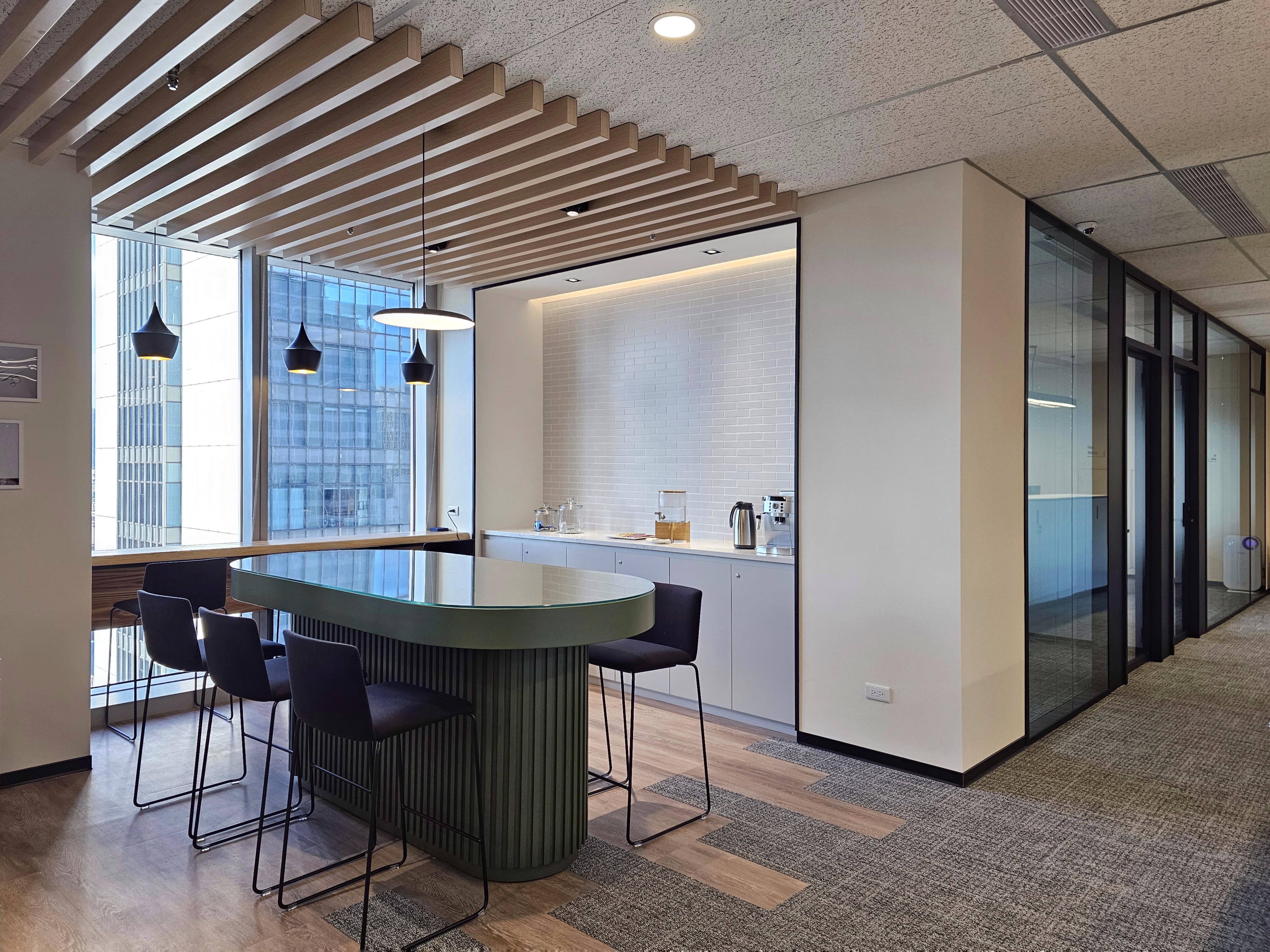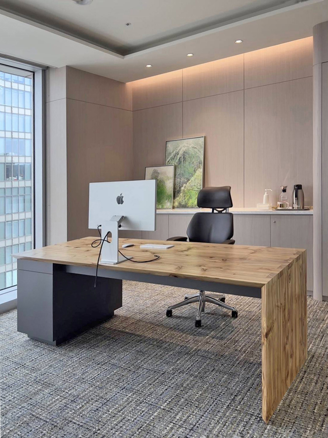 本案我們主要工作項目是系統化的高隔音雙層玻璃隔間(隔音測報48db),及許多百貨公司精品般地的訂做家具…… 同時基於這個法藉總經理對臺灣原生木的熱愛,我們請北科大工業設計系陳殿禮教授協助,在入口區接待區&主管桌&休憩區,我們用了臺灣龍眼木.櫸木以及臺灣杉為材㪵純手工打造精彩呈現, 為外來文化融合臺灣精神最佳辦公室的經典設計 感謝 逸格設計 精彩創作 設計師:楊芷涵