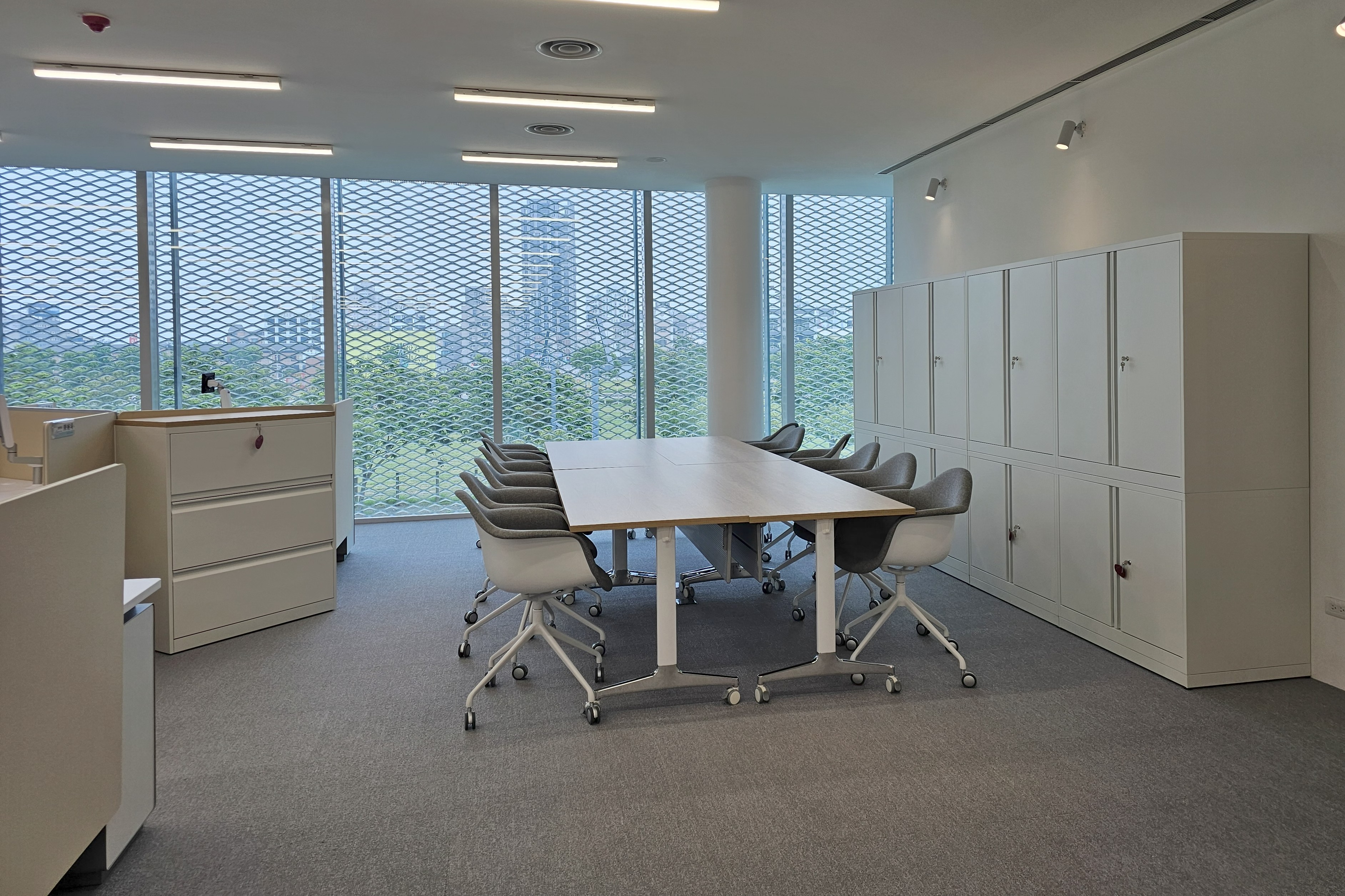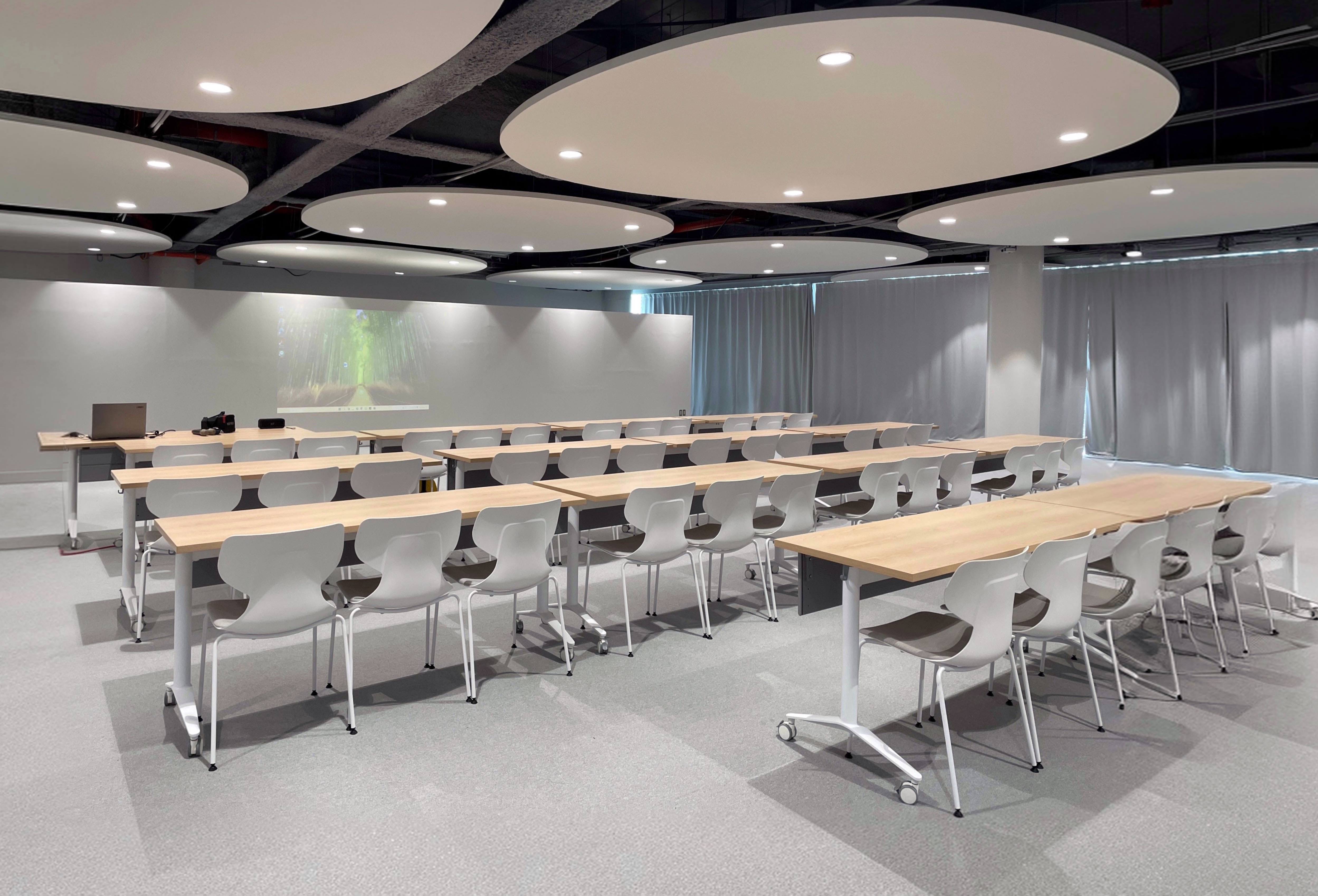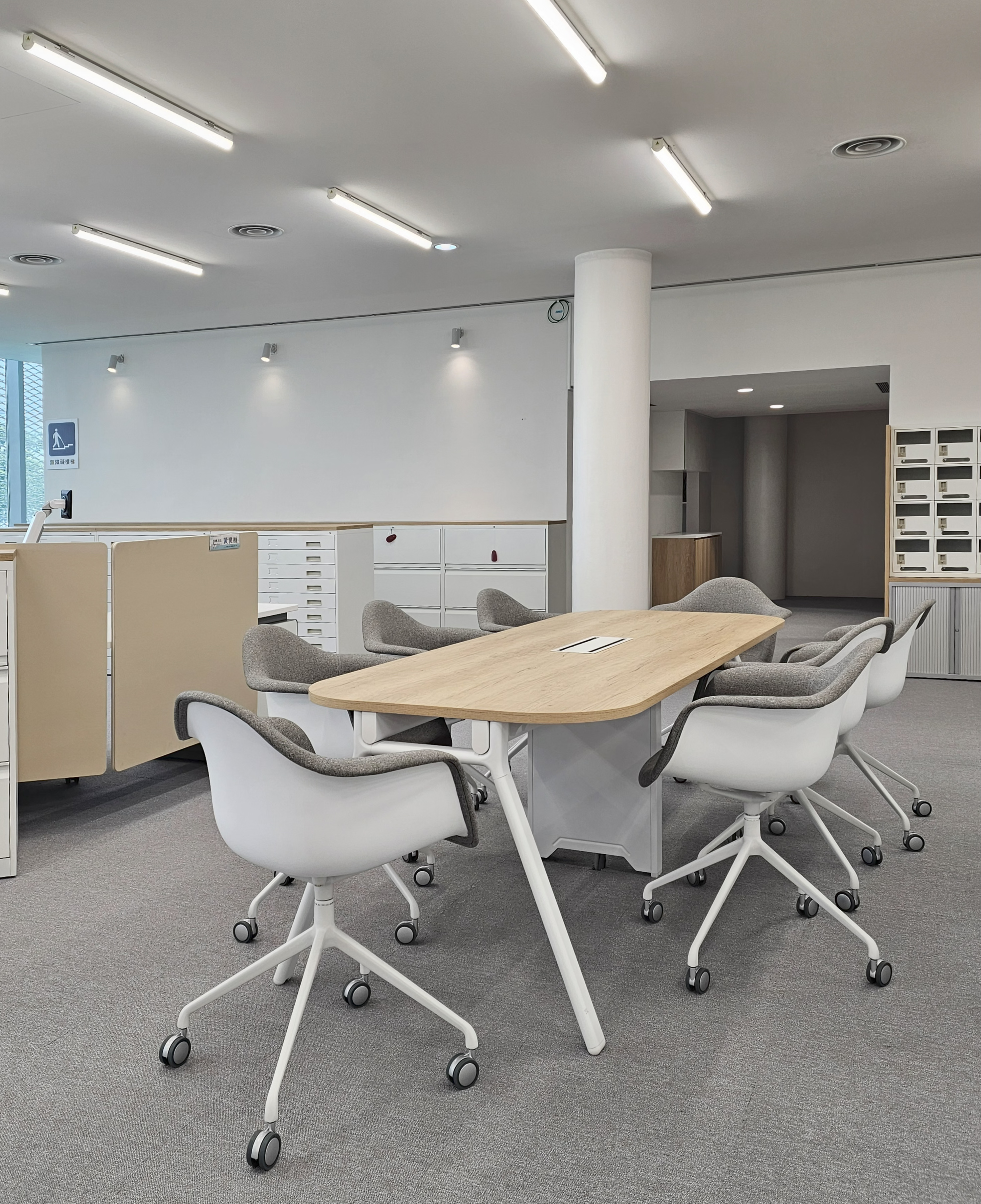 建築大師妹島和世在臺第一個作品臺中[綠美圖],一共8棟建築物其中H棟行政大樓,圖書館部門辦公室及其他區域公共空間家具,文化局圖書自辦有利標評選,元皿家具以呼應建築外觀設計,輕盈.漂浮.曲線為設計主要概念,提供優質的家具有利標競賽第1名